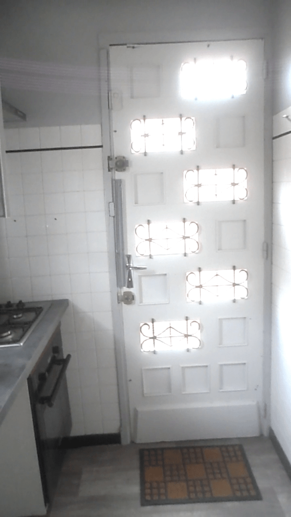 Si le budget ne nous permet pas pour l’instant de changer la porte d’entrée (on s’occupera de son cas plus tard), changer celle de la cuisine est une priorité car le système de fermeture est défectueux.