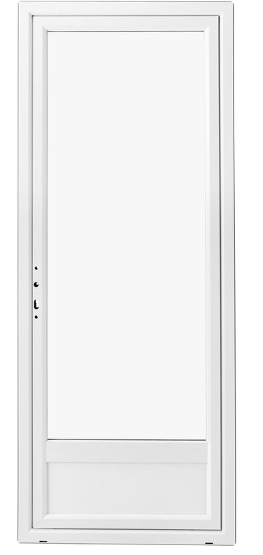Par chance, la « chose » est de taille standard, ce qui nous permet de choisir parmi les portes fenêtres en PVC proposées par les grands magasins de matériaux et de bricolage. Notre choix s’est porté sur le modèle Pria de chez Lapeyre que nous avons posé en feuillure après avoir retiré la porte existante et son montant.