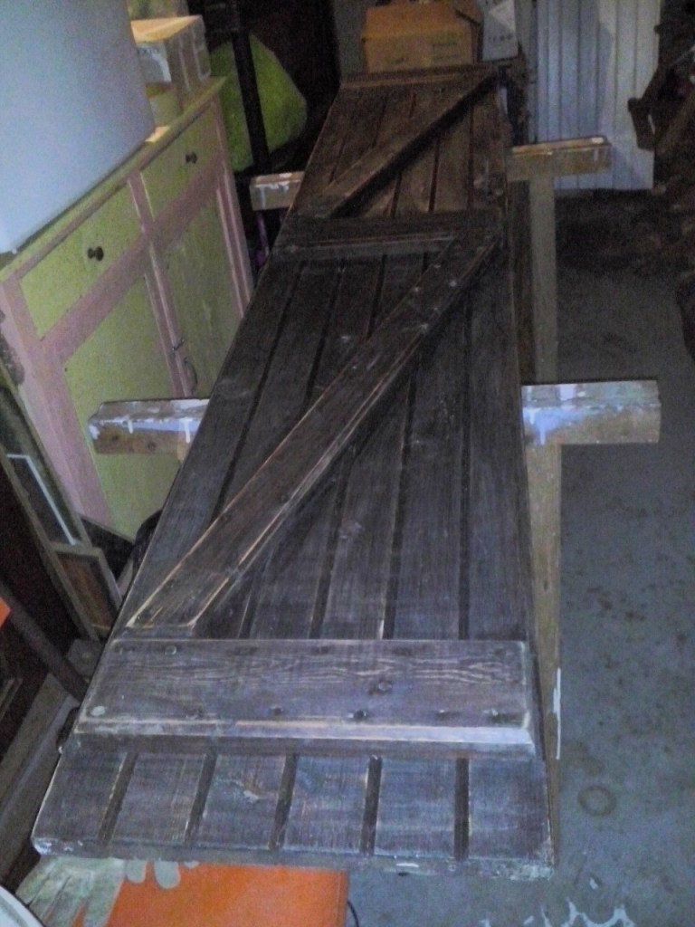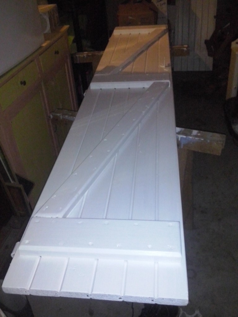 Par ailleurs, l’option volets roulants étant impossible pour une question de réseau électrique, mon premier achat pour la maison après la signature de l’acte authentique a été une paire de volets battants d’occasion aux dimensions parfaites pour l’ouverture, que j’ai poncés et repeints en blanc.