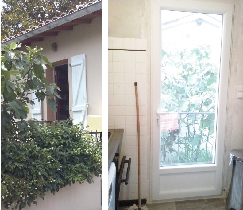 Les années 70 n’ont pas charrié que de la bonne musique, elles ont aussi laissé des menuiseries fâcheuses chez les gens. Comme chez nous, par exemple, qui avons une porte d’entrée d’une grande laideur (voir post précédent). Et comme si un seul exemplaire ne suffisait pas, la porte de la cuisine qui donne sur le jardin est identique. #doublebonheur