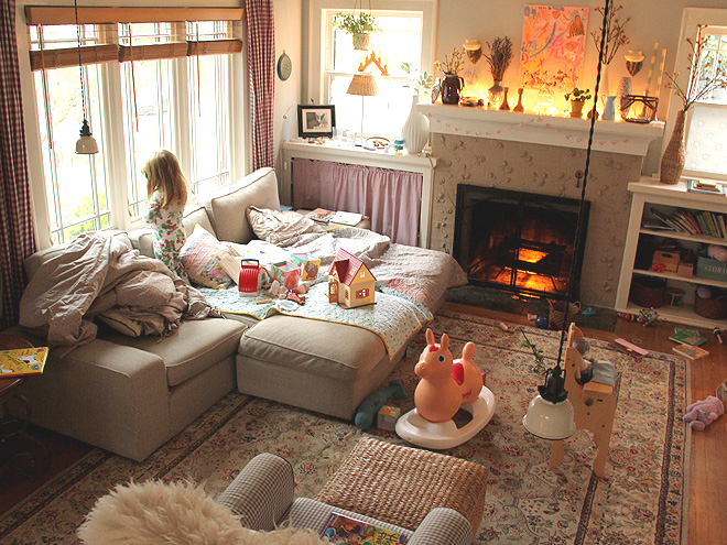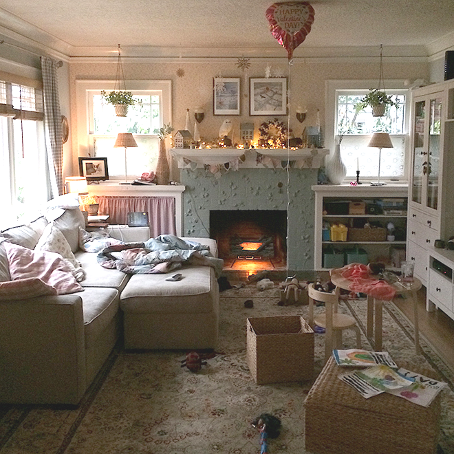 Voici maintenant le salon shabby chic d’Alicia Paulson du très beau site Posie gets cosy .
