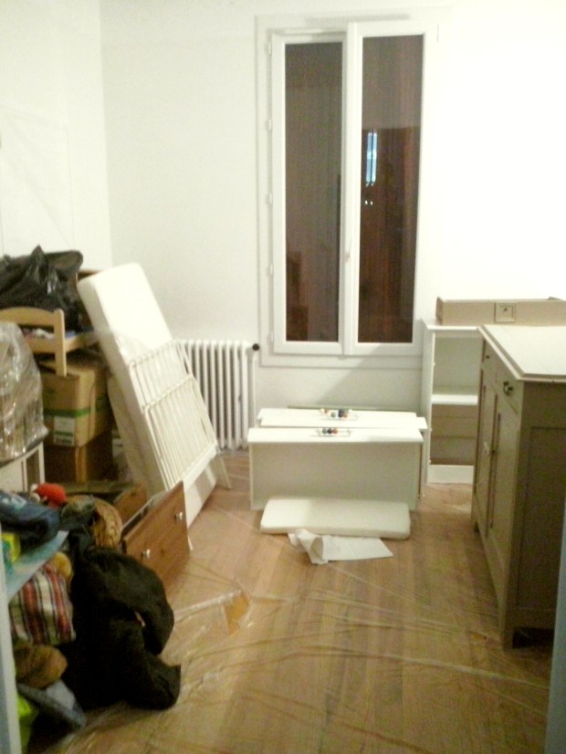 Puis très vite cette sensation de satisfaction se dissipe pour laisser place à la prise de conscience suivante : il faut faire quelques agencements tout de suite car la semaine va être chargée entre le travail, l’école et notre ancienne maison de location, que nous devons repeindre et nettoyer avant de rendre les clés.