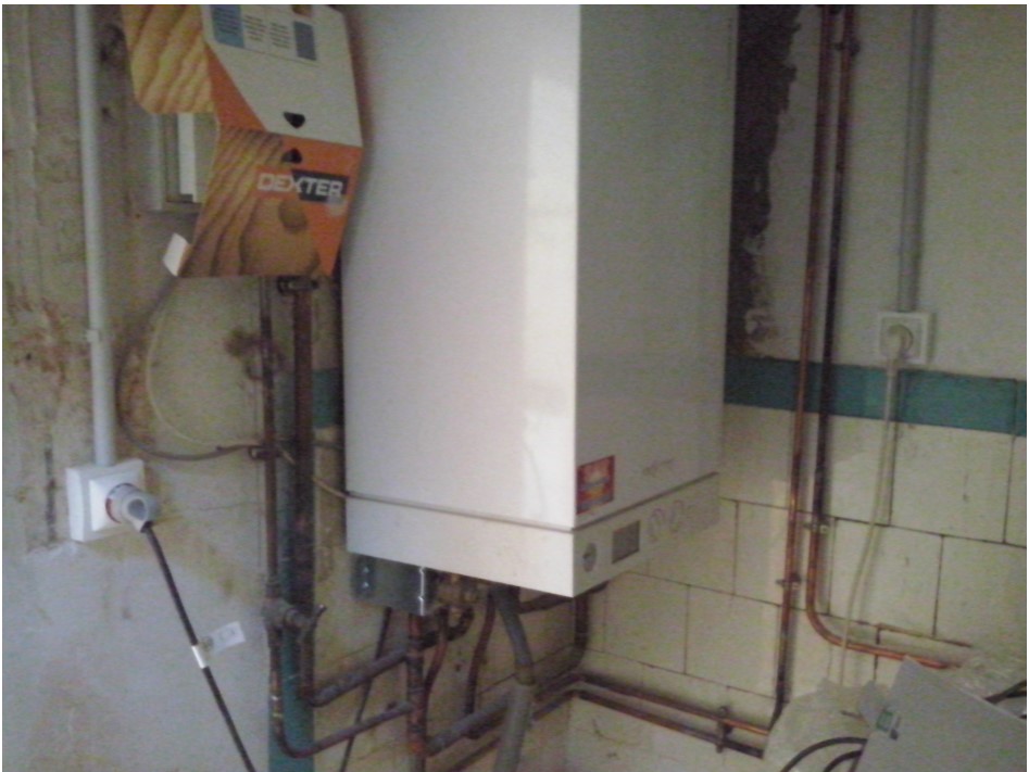 C’est dans cet espace que se trouve non seulement la chaudière, mais aussi un radiateur et un important réseau de tuyaux de cuivre qui courent le long d’à peu près TOUS les murs, mais aussi au plafond.