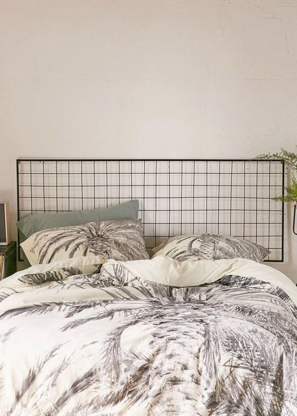 Et mon coup de cœur : cette grille murale détournée en tête de lit