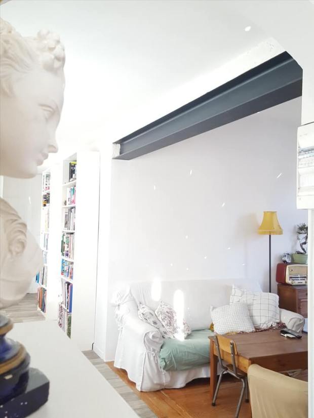 Mais attention, conserver un aspect brut ne signifie pas pour autant que la poutre IPN ne nécessite pas d’être traitée (c’était trop beau). En effet, pour à la fois la protéger et obtenir un beau résultat, il faut poncer la surface pour retirer la rouille instable, susceptible de se détacher, puis appliquer un produit fixateur de rouille incolore (type Ancorrust).