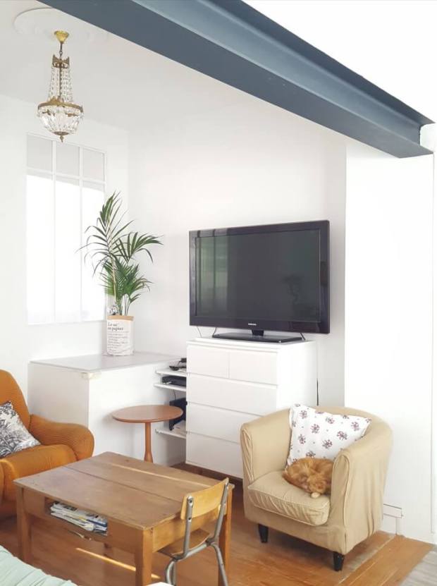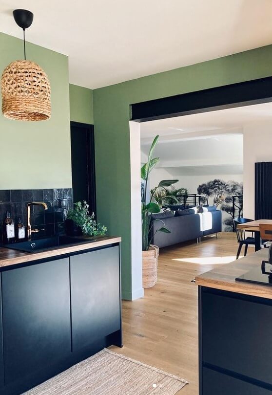SAUF si l’IPN n’est pas au ras du plafond, comme ci-dessous chez @soony.spark.house, qui pourrait, elle, se permettre d’avoir une IPN vert sauge (mais qui a préféré la mettre en valeur) (et qui a eu bien raison puisque son IPN noire fait écho aux autres éléments noirs de son intérieur) (vous êtes toujours là?).