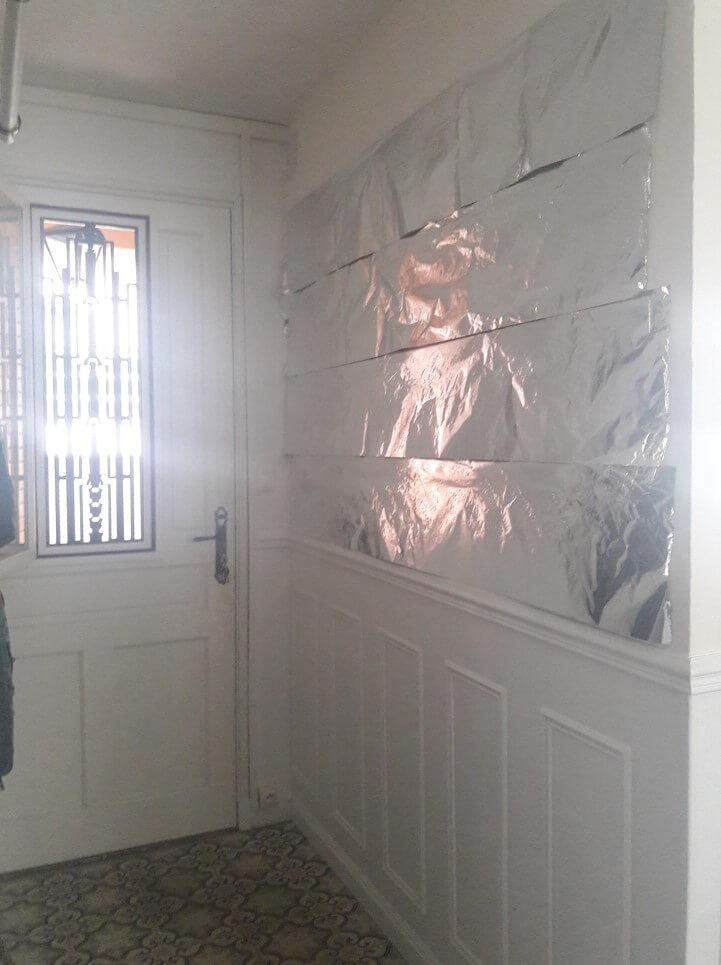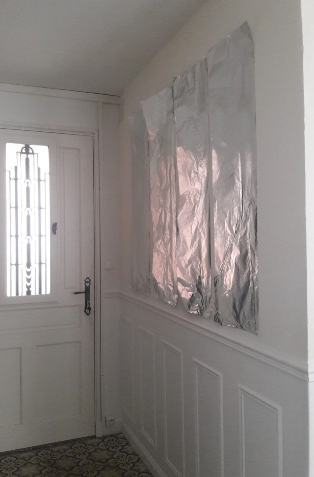 Si la technique du papier alu a l’avantage d’autoriser un nombre d’essais quasi illimités (sur différents murs, à différentes hauteurs) elle permet aussi d’avoir une idée de ce que le futur miroir va refléter.