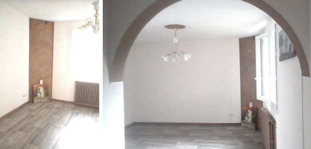 Lorsque nous avons visité notre maison, j’ai beaucoup regretté de constater qu’il n’y avait pas de cheminée. Encore pire : la salle à manger en avait jadis accueilli une mais elle n’y était plus. C’est un pan coupé dans l’angle qui trahissait son emplacement.