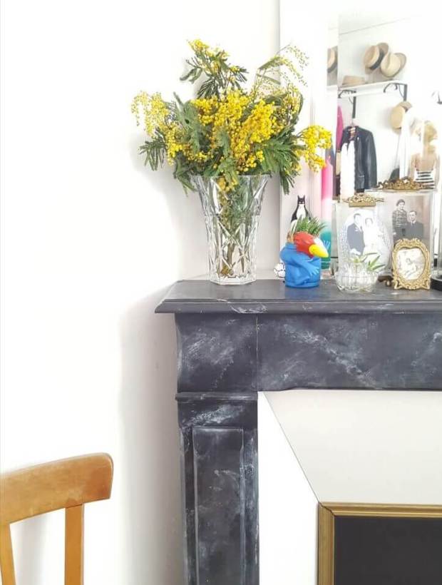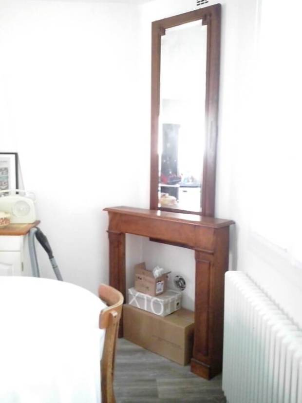 Alors, grâce à mon légendaire sens des priorités, une des premières choses que j’ai achetées lorsque nous sommes devenus propriétaires est un manteau de cheminée en bois, chiné sur Leboncoin pour 40 euros.