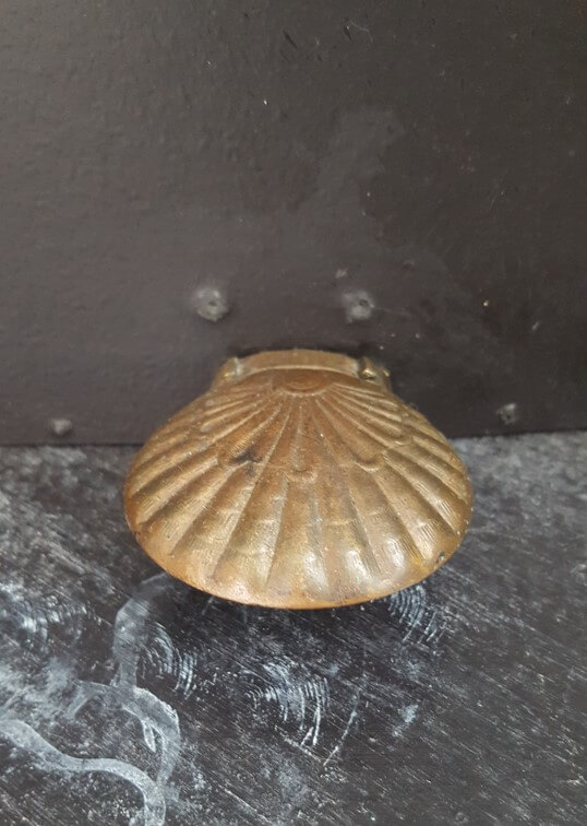 Enfin, j’ai chiné une poignée en laiton en forme de coquille pour apporter la touche finale indispensable à mon rideau de cheminée.