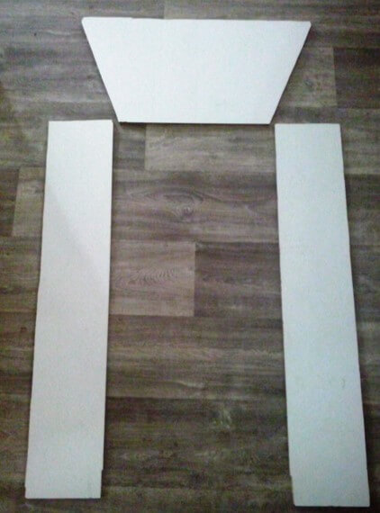 Mon faux rideau de cheminée est composé de trois rectangles découpés dans des panneaux de MDF d’épaisseur 3mm, assemblés avec de la colle à bois, puis peints en noir.